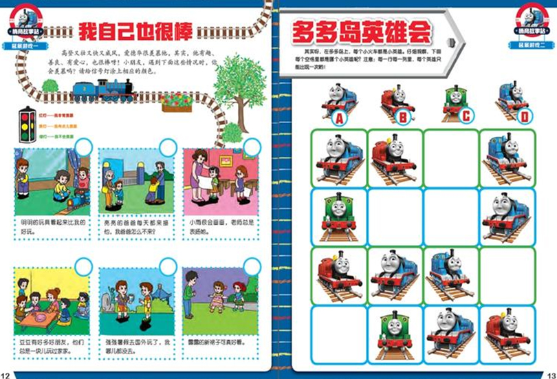 除了精彩的故事,杂志还包含了丰富多样的儿童趣味内容。例如,有迷宫、绘画、填字游戏、拼图等,这些活动旨在帮助孩子们提高他们的思维能力、观察力和动手能力。此外,杂志还会有托马斯小火车的插图和图片,让孩子们更好地了解这个鲜明的虚拟世界。